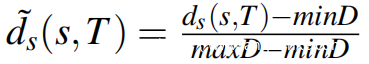 由于它们的实际值不如覆盖前缀的长度有意义,但它们允许对种子进行排序,因此我们应用最小-最大规格化[2]来获得规格化种子距离(d˜s(s,T))和规格化切边得分(e˜s(s,T))。