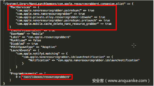 为了找到漏洞,我们需要反汇编和分析包含相关Mach服务的处理函数的二进制文件。/System/Library/ LaunchDaemons包含了大多数Mach服务的配置plist。在plist文件中,“ProgramArguments”字段显示了二进制文件的路径,“MachServices”显示了相关的mach服务。