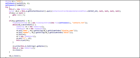 样本运行以后会在后台,通过最新服务端(mangasiso.top)下发15种远控指令,其远控操作有:获取用户手机通话记录信息、获取用户手机通讯录信息、获取用户手机短信息、获取外置存储卡文件列表信息、获取WiFi、设备厂商等信息、获取用户地理位置信息、获取用户手机已安装软件列表等。