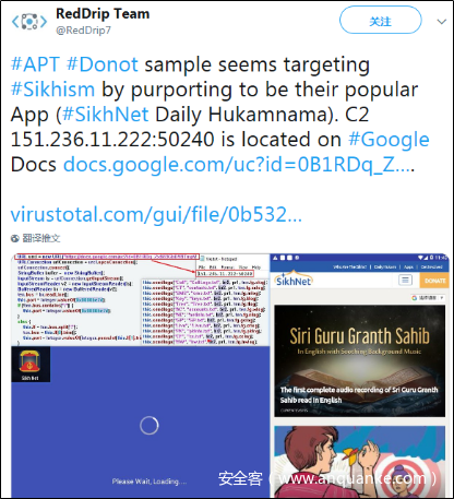 该APT组织主要针对政府机构等领域进行攻击,以窃取敏感信息为主要目的。该APT组织除了以携带Office漏洞或者恶意宏的鱼叉邮件进行恶意代码的传播之外,还格外擅长利用安卓APK进行恶意代码传播。
