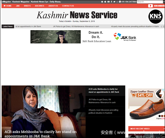 Kashmir News Service(克什米尔新闻服务)官网截图: