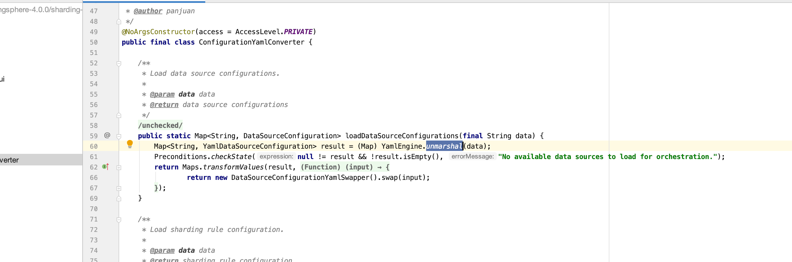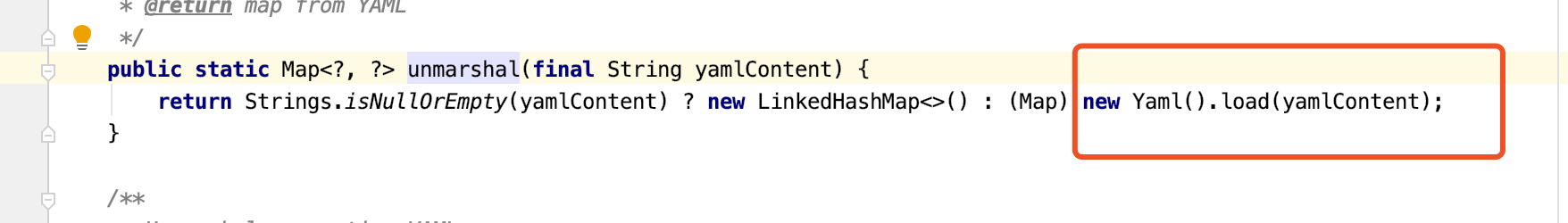 可以看到unmarshal()方法直接将内容传入 yaml.snakeyaml 的load()方法进行解析