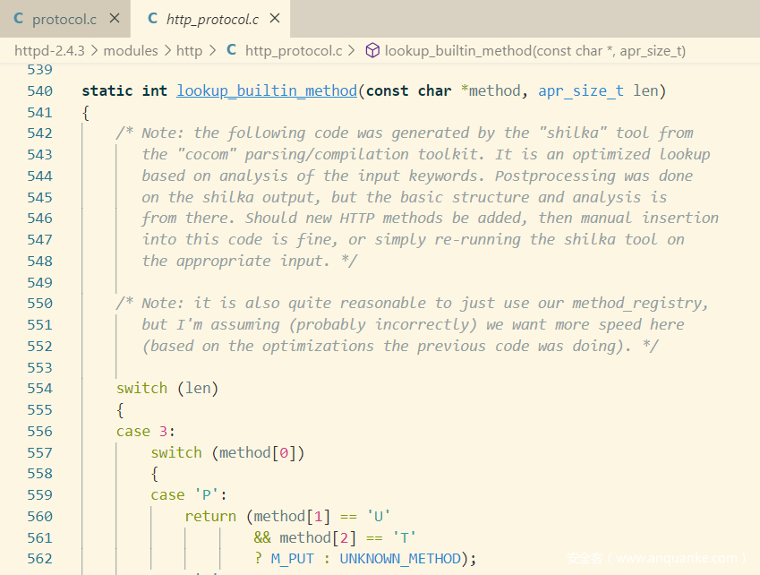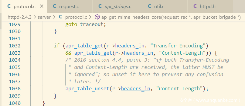 首先,在最新版本的Apache服务器http2.4.41中,似乎移除了对HTTP的许多“兼容特性”,这些特性是不符合RFC标准的,而笔者当时阅读的代码为2.4.3,本文记录了笔者在阅读代码时认为十分重要的一些解析细节。