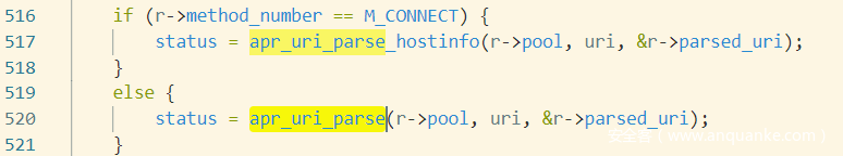 URI是如何解析的,没有看到具体代码,相应的函数是个钩子函数。