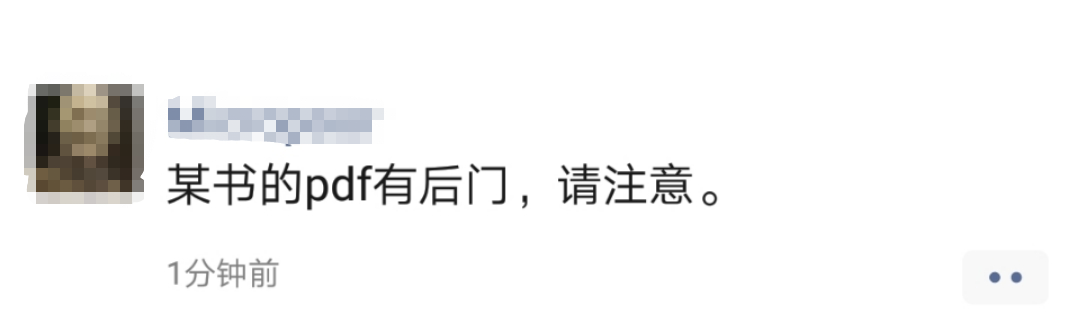 1.2G的学习资源,大家纷纷下载完毕准备一观之后,某书PDF有后门的消息立刻又传播开来