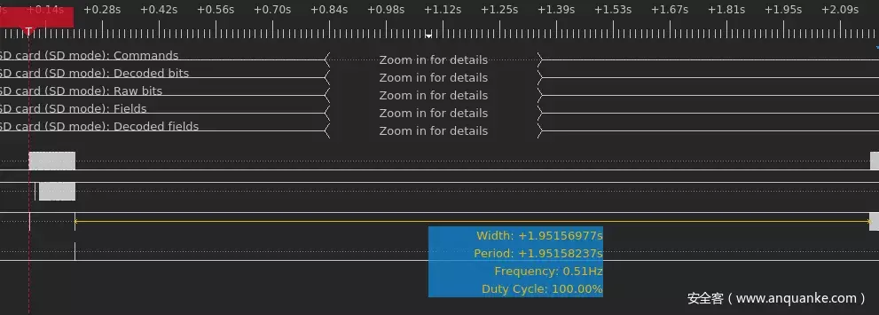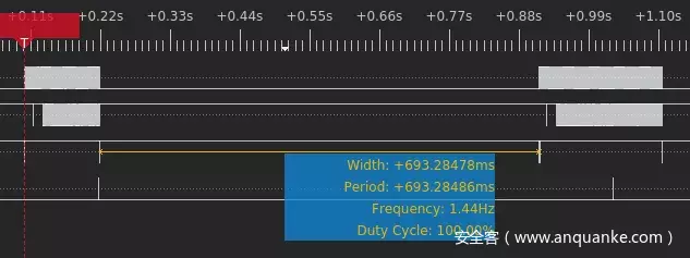 因此,我们假设在最初的700ms左右的时间里,BootROM是在忙着解析预加载器映像的结构,并执行签名验证;而在接下来的1.2s的时间内,则主要忙于初始化预加载器的代码。据此我们可以判断出,电压毛刺攻击应以eMMC读取预加载器后的第一个700ms窗口为攻击目标。