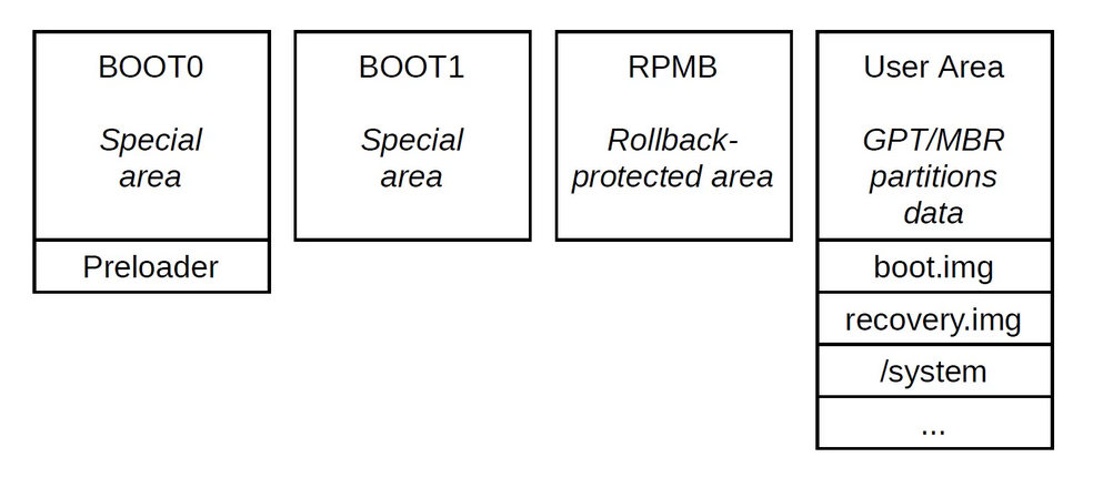 MediaTek的预加载器是引导过程中的第二个阶段,也是第一段可变代码。预加载器被存储在BOOT0 eMMC分区上。如eMMC规范的第7.2节所述,引导分区是一些特殊的硬件分区,与主用户数据分区相互独立。