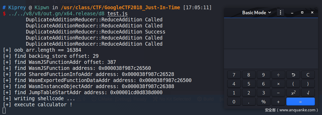 Google CTF 2018(final) Just-In-Time 是 v8 的一道基础题,适合用于v8即时编译的入门,其目标是执行/usr/bin/gnome-calculator以弹出计算器。在这里我们通过这道题目来学习一下v8的相关概念。