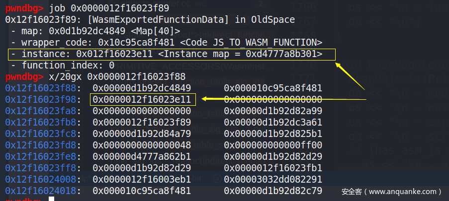 - 再从 WasmExportedFunctionData 中获取 WasmInstanceObject(相对偏移为 0x10)