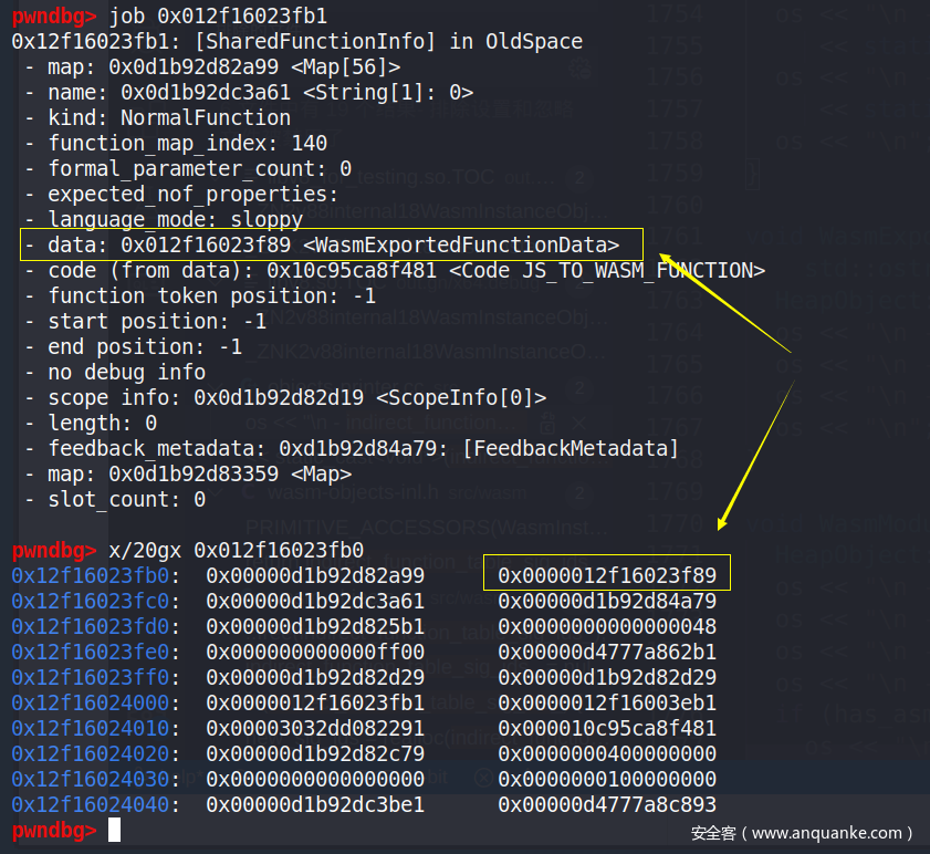 - 之后从 SharedFunctionInfo 获取其 WasmExportedFunctionData(相对偏移为 0x8)