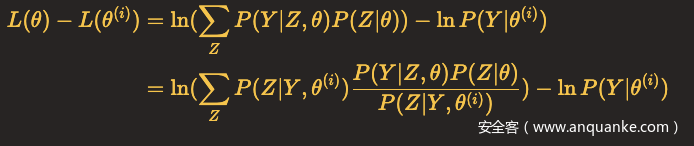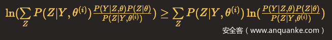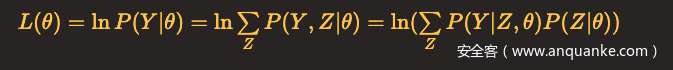 我们面对的是一个含有隐含变量Z的概率模型,目标是极大化观测数据Y关于参数θ的对数似然函数,即极大化: