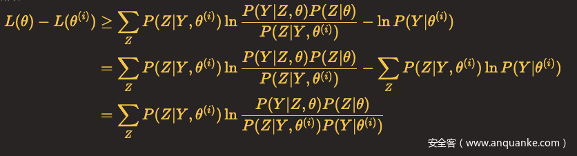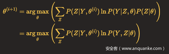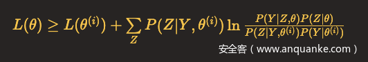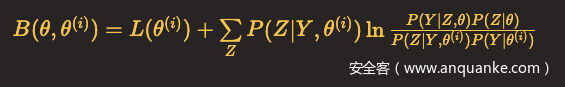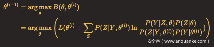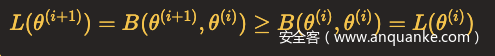 因此,任何可以使B(θ,θ(i))增大的θ,也可以使L(θ)增大,于是问题就转化为了求解能使得B(θ,θ(i))达到极大的θ(i+1),即