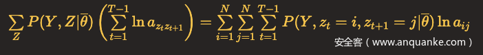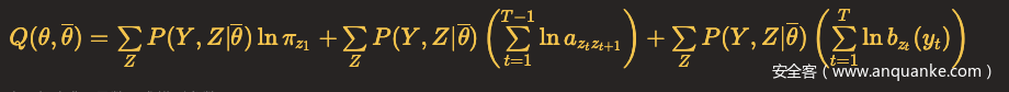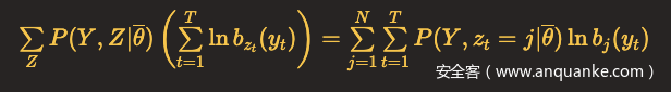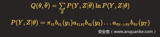 在隐马尔可夫模型的参数学习问题中,假设我们用Y表示观测变量的数据,Z表示隐含变量的数据,θ表示需要估计的模型参数。