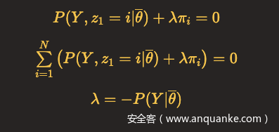 上式对π_i求偏导数并令结果为0,解得