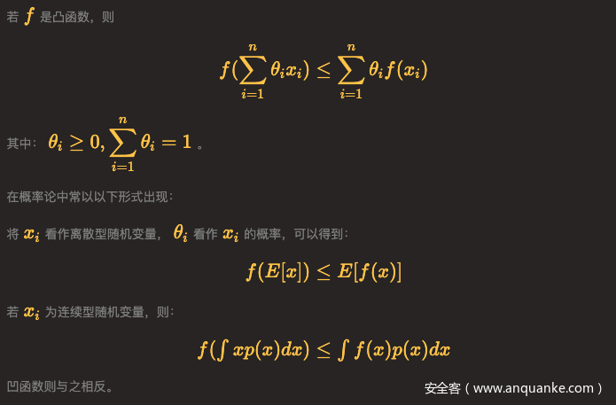 先复习一下Jensen不等式,后面会用到。如果不了解或者忘记了,可以先看下笔者以前写的关于凸优化的笔记《凸优化相关概念整理总结》。