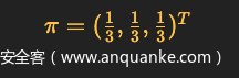 我们假设第一次(注意这里说的是第一次)三个骰子被取到的概率都是1/3,那么可以用向量的形式表示: