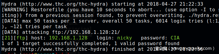 使用hydra爆破FTP(跑这个密码时加载产生了几十万条数据,破解到奔溃…)