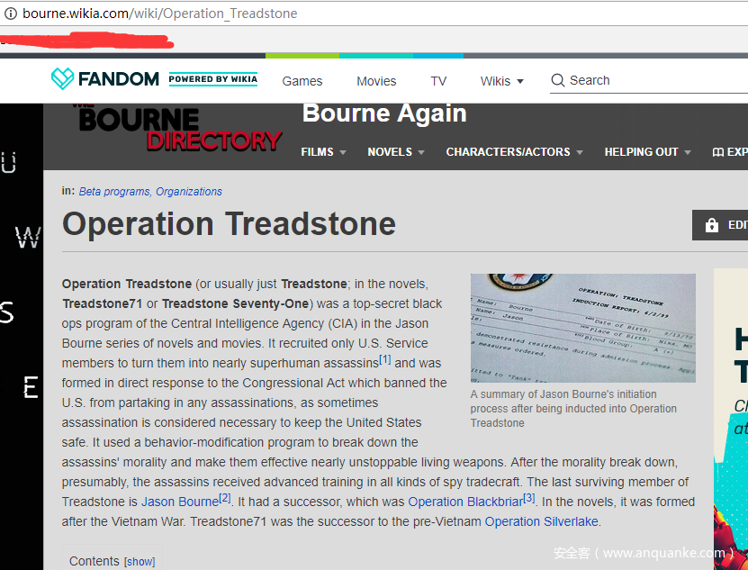 使用cewl来爬取该关联网站来生成字典,命令:cewl -d -m -w out.txt http://bourne.wikia.com/wiki/Operation_Treadstone