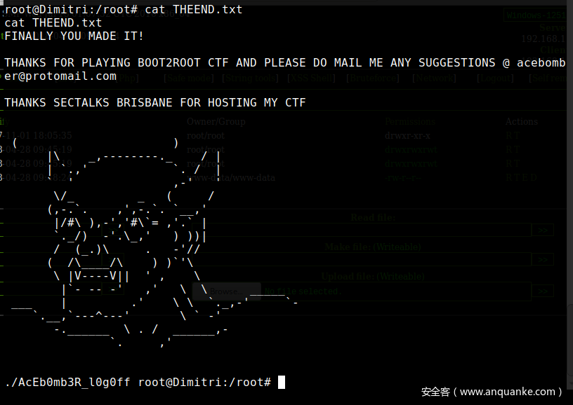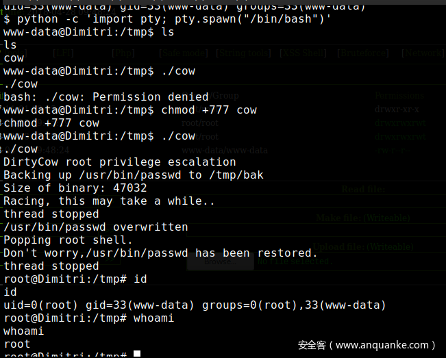 下一步提权就比较简单了, 在有权限的目录下上传提权EXP,反弹一个shell,执行该EXP即可。