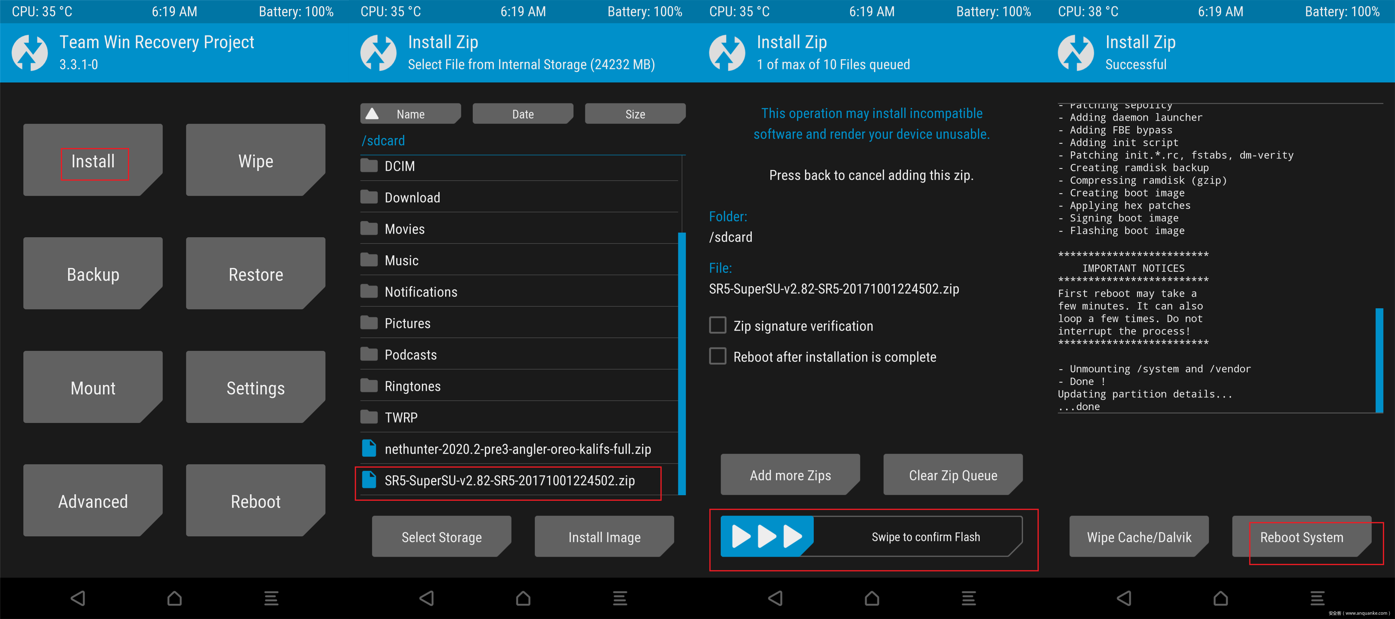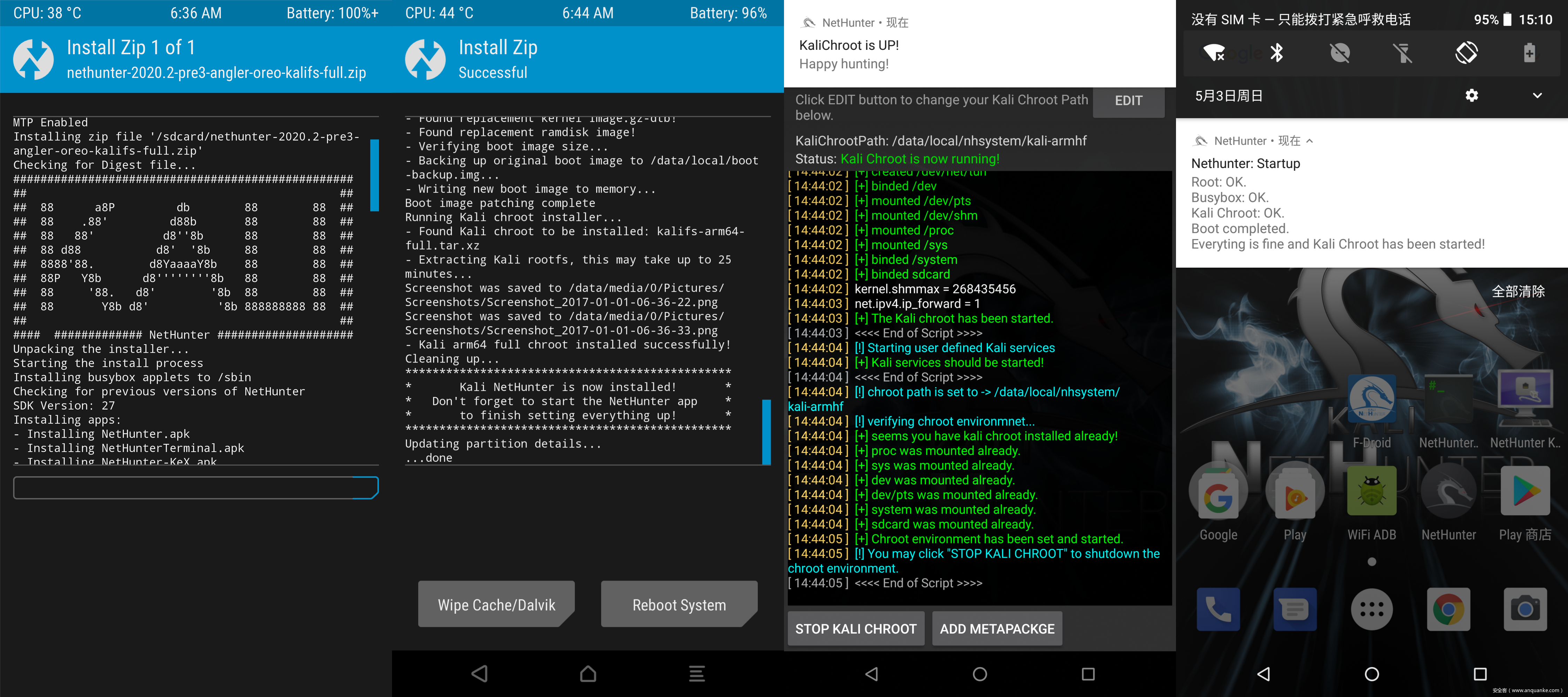 再次进入recovery,把nethunter-2020.2-pre3-angler-oreo-kalifs-full.zip.torrent刷进去,中间解压Kali rootfs的地方,会至多25分钟。