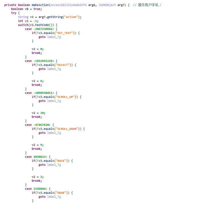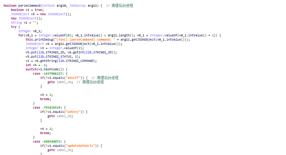 上述这些只是冰山一角,如果配合root可以做到对其他应用如手机浏览器进行注入,启动用户手机指定App,删除指定应用,更新恶意插件等恶意行为。