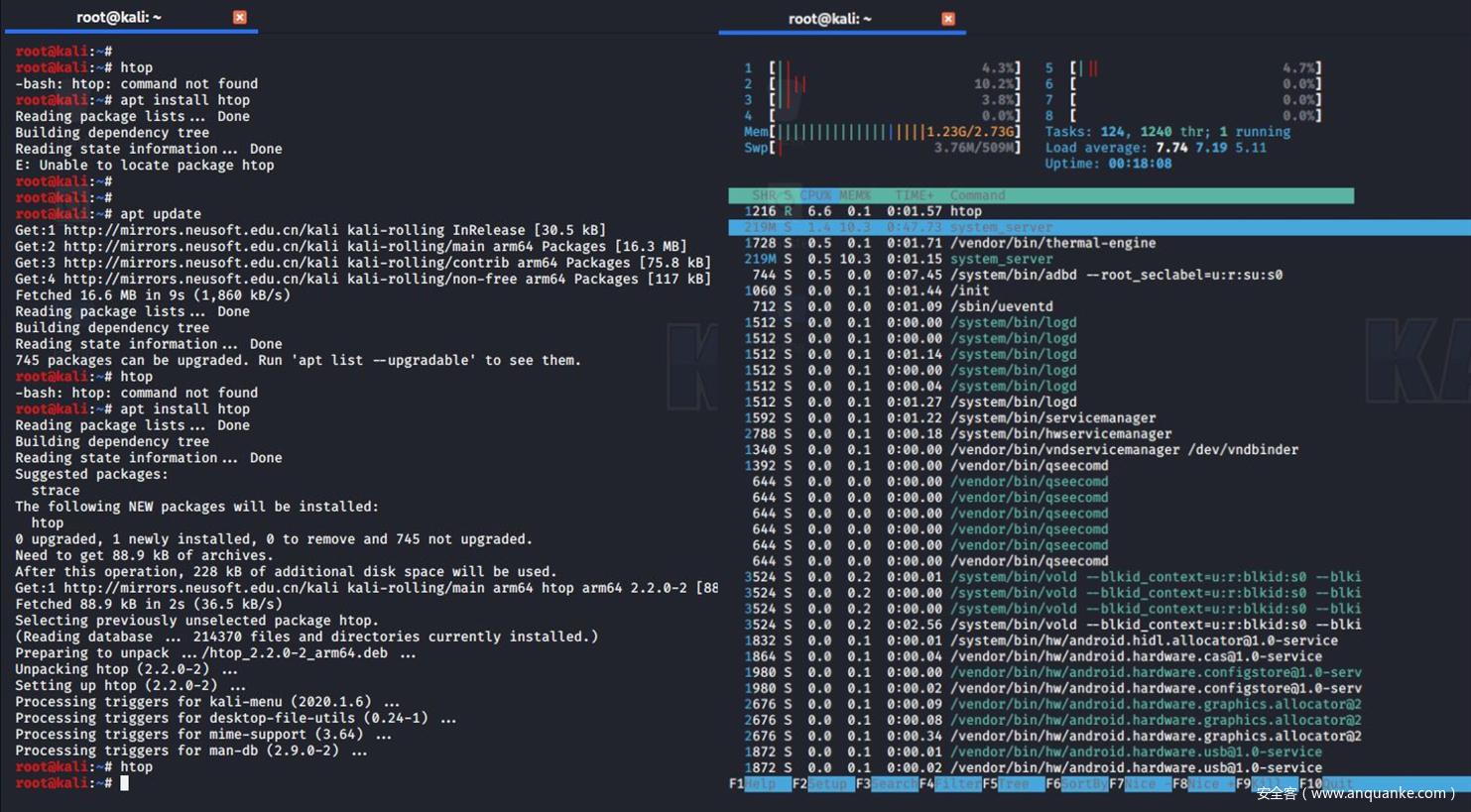 其实Kali Nethunter的强大之处不仅在于攻击,在防守方面也照样“屡立奇功”,比如得益于其定制版内核解锁arm64架构的Linux软件包安装,可以作为App沙箱和蜜罐,捕获木马并进行内核层面的“降维”攻击分析。详细分析流程和思路敬请期待防守篇。