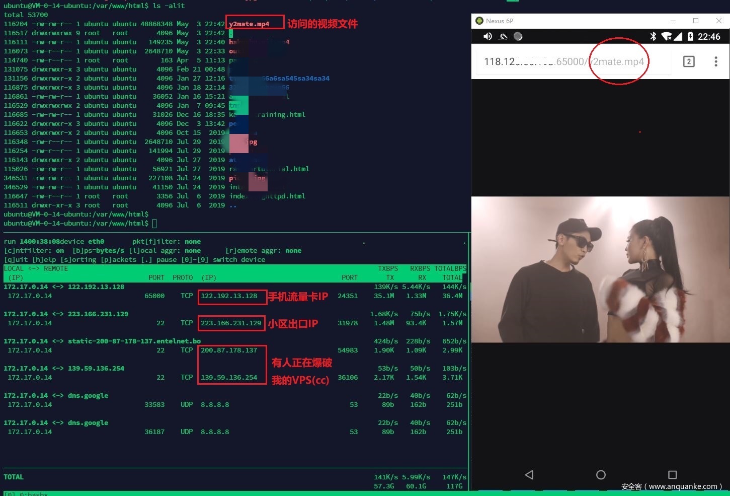最后来检查下效果如何,手机播放VPS上的视频康康,确实是通过手机流量卡去访问该mp4的,实验成功!