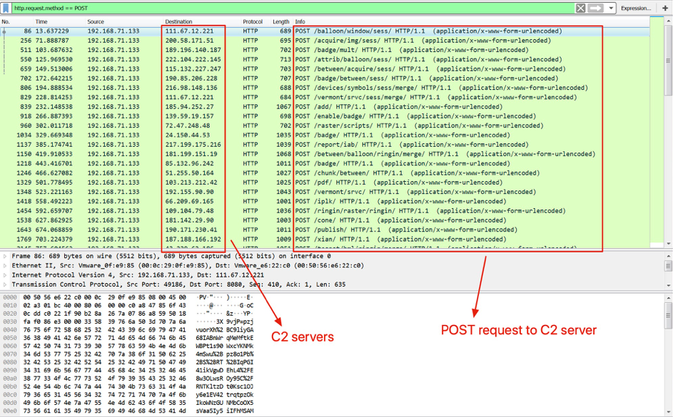 接下来,我们来看看发送到C2服务器的流量。在样本中,它向C2服务器发送了HTTP POST请求。