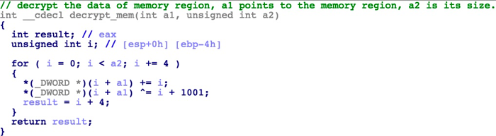 3.在步骤2中解密内存空间A的数据。解密算法如下图所示: