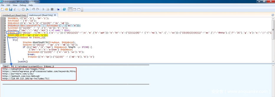 变量$ YBAAU_D是一个包含五个URL的列表。通过调用它来从远程服务器下载payload并执行。下表中列出了所有恶意URL,并给出了每个URL所对应的payload的名称,md5值及大小。
