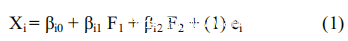 β1和β2在这里称为载荷。误差项e1表示假设关系不精确,以致E(e1)= 0 。