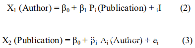 在本文中,因素是Author和 Publication。数据集A和数据集B表示Author和 Publication之间的关系,并且Publication的数量被视为载荷。这些因素在数据集C和数据集D中是相反的,并且在Publication和Author之间形成了关系。反转载荷因素变量,找到计算的平均值和方差,反之亦然。在这里,Author数量构成了载荷。对于数据集中的每个Author和 Publication,下面的两个方程式被表示,忽略了表格中用于计算各个Author和 Publication的均值和方差的每一行。假定的关系为: