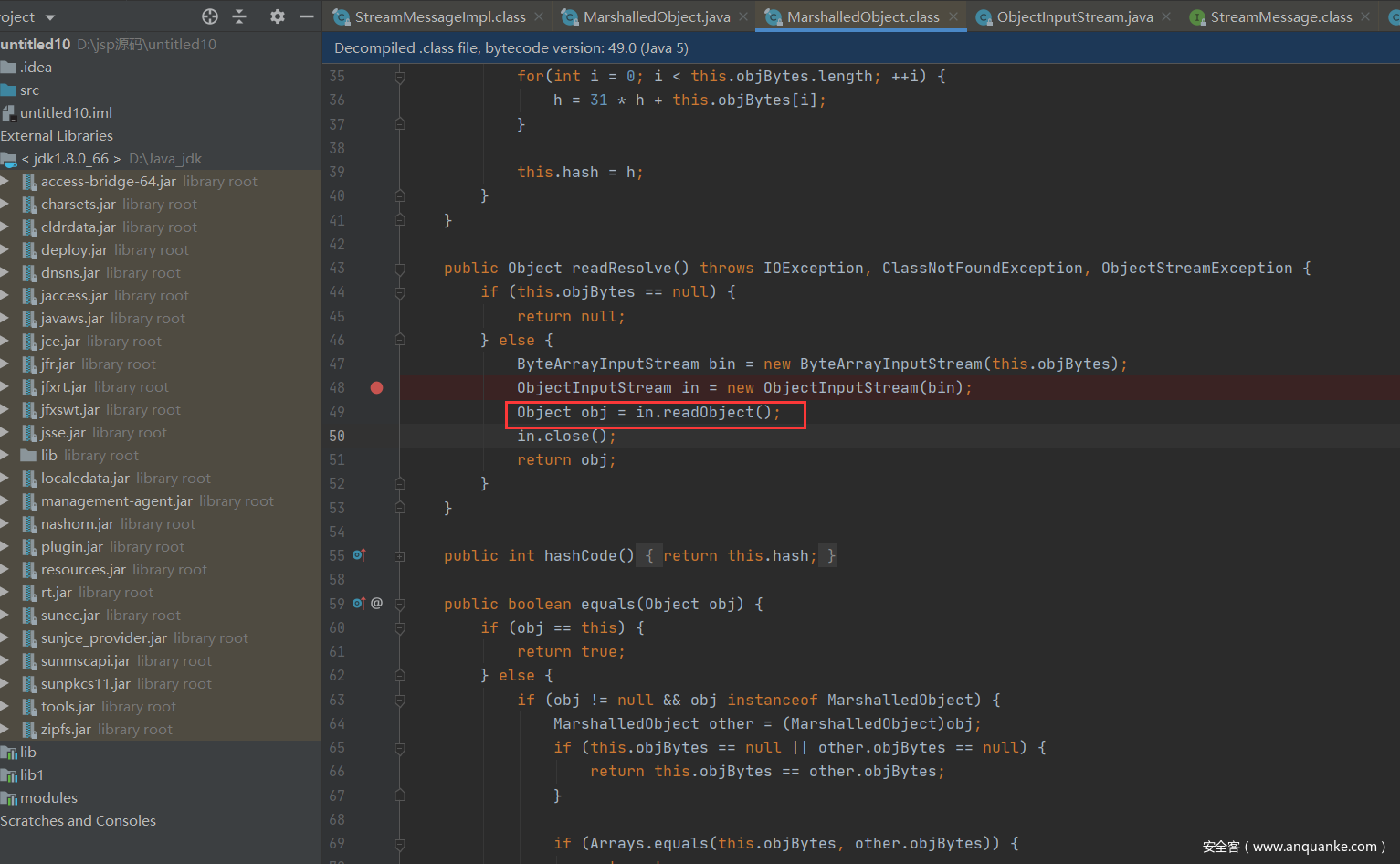 跟踪进MarshalledObject里面进行查看。
