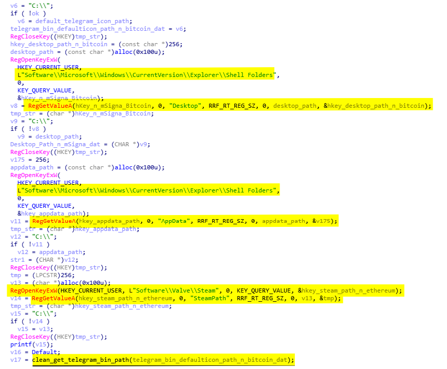 完成后,它会继续通过检测注册表值来获取程序路径。像Steam路径,Telegram可执行文件中图标的名称和资源索引的完整路径(用于获取二进制路径)。