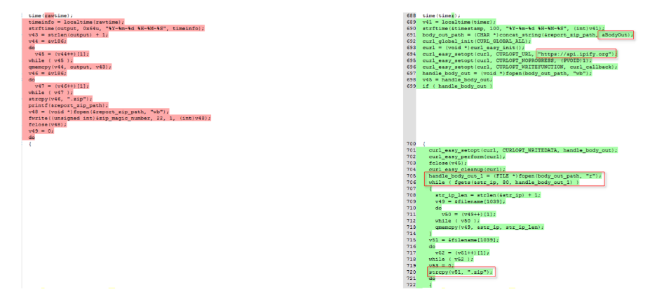先前以时间戳形式生成的报告名称已针对公共IP地址进行了更改。这是通过请求ipify.org的API 并将响应保存在%TEMP%目录下的body.out中,如下图: