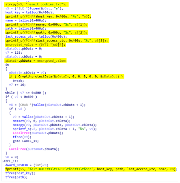 窃取完所有浏览器的证书后,恶意软件将dump cookies信息。