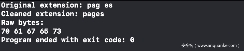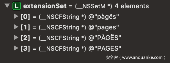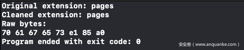 这是Apple在该方法内首先执行的步骤,以便删除扩展名中的同形字符。比如,我们可以通过一个简单的测试用例查看处理效果: