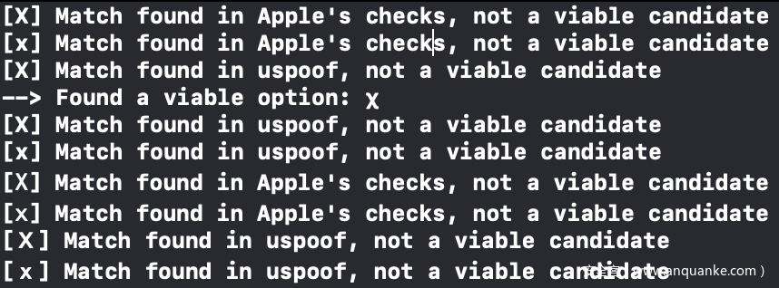 这种处理并不完美,不能全面覆盖,因此Apple还引入了ICU的uspoof_getSkeleton,用来进一步识别容易被混淆的值。此时我们可以更新测试用例,如下所示: