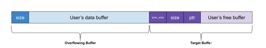 图3:我们可控缓冲区(蓝色)放置在freed的缓冲区(紫色)之前