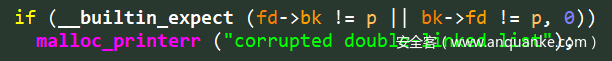 实际上,2005年的glibc 2.3.6版本对这个的利用进行了修复,称为““Safe-Unlinking”。它在unlink之前先验证了双向链表的完整性,如下图所示: