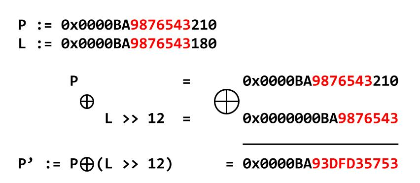 图6:掩码指针P被随机位覆盖,如红色所示