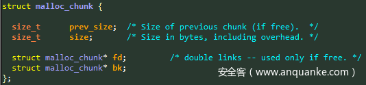 3.当缓冲区被释放并且没有存入FastBin中时,第三和第四个字段都被用作双链表的一部分。这些字段位于用户缓冲区的前8个字节处。