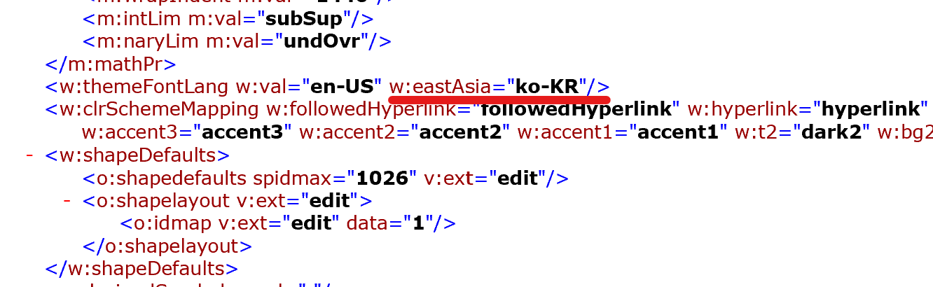 我们在捕获到的docx文档的settings.xml文件内,发现了语言值w:eastAsia=”ko-KR”,攻击者过往的投放docx文件进行相关分析也发现存在同样的语言值,由此可以推测攻击者可能存在韩语语言背景。