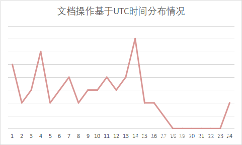 我们从攻击者过往攻击中所投放的所有文档中提取出文档的上次打印时间、首次创建时间、最近保存时间信息,得到下图。可以看出,攻击者对于文档的操作时间段分布于UTC时间0点至16点。从工作时间角度来看,与之前所推测的朝鲜半岛地区时间吻合。